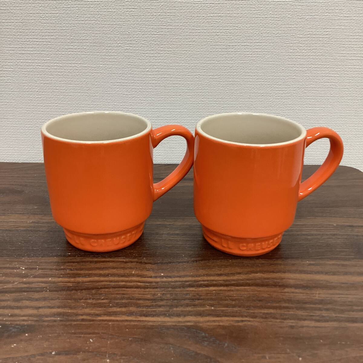 > ◇中古品◇ ル・クルーゼ(LE CREUSET)スタッカブルマグ ペア 2個セット 箱無し オレンジ