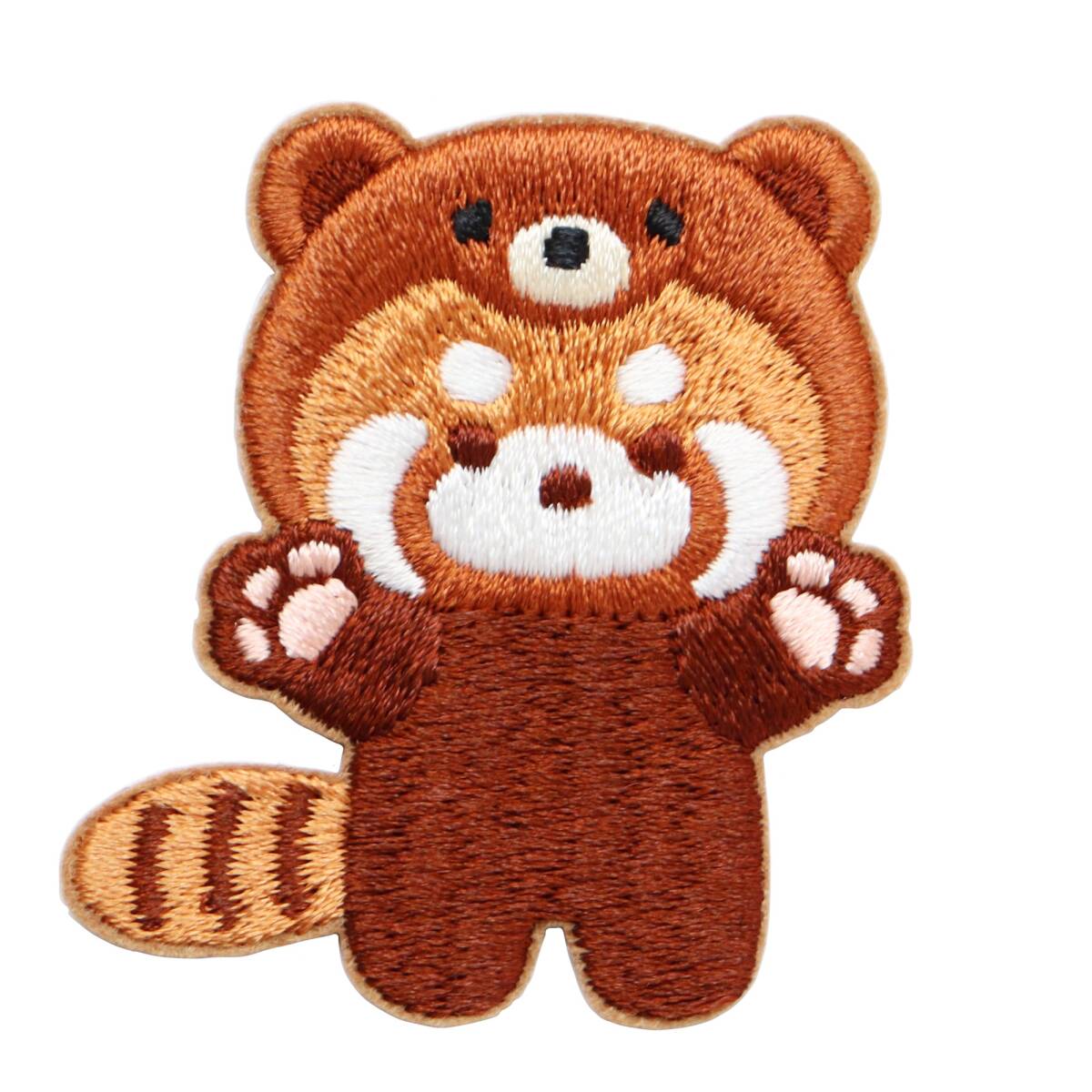 - ワッペン レッサーパンダ かわいい刺繍パッチ シール兼アイロン接着 説明書付き クマ