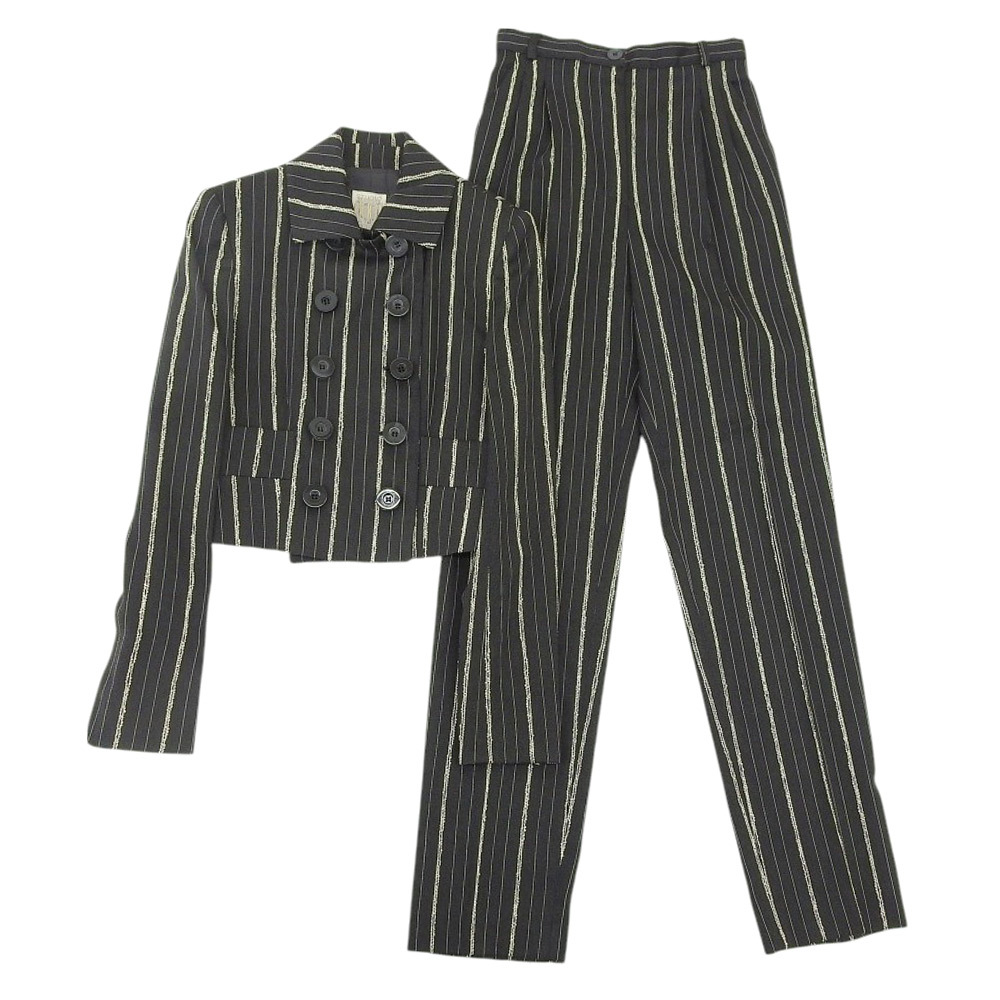> GIANFRANCO FERRE ジャンフランコフェレ 刺繍ストライプ セットアップ ジャケット パンツ レディース ウール ブラック 42 ヴィンテージ