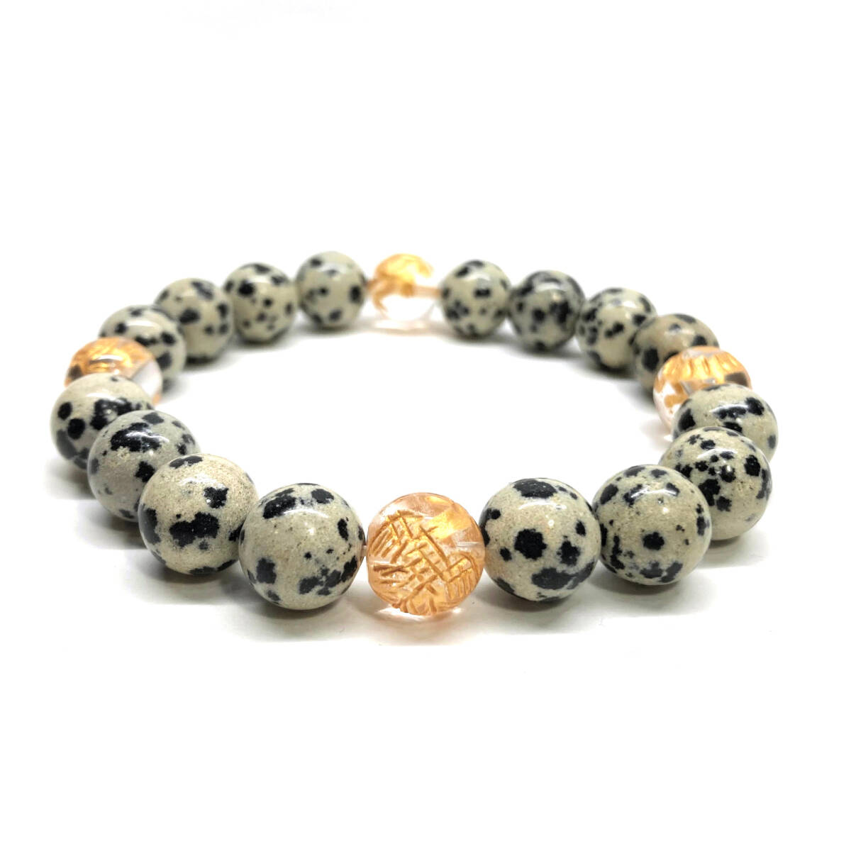 - 10mm 四神獣金彫水晶×ダルメシアンジャスパー パワーストーン ブレスレット天然石 運気上昇 開運 金運 青龍 白虎 玄武 朱雀 ☆
