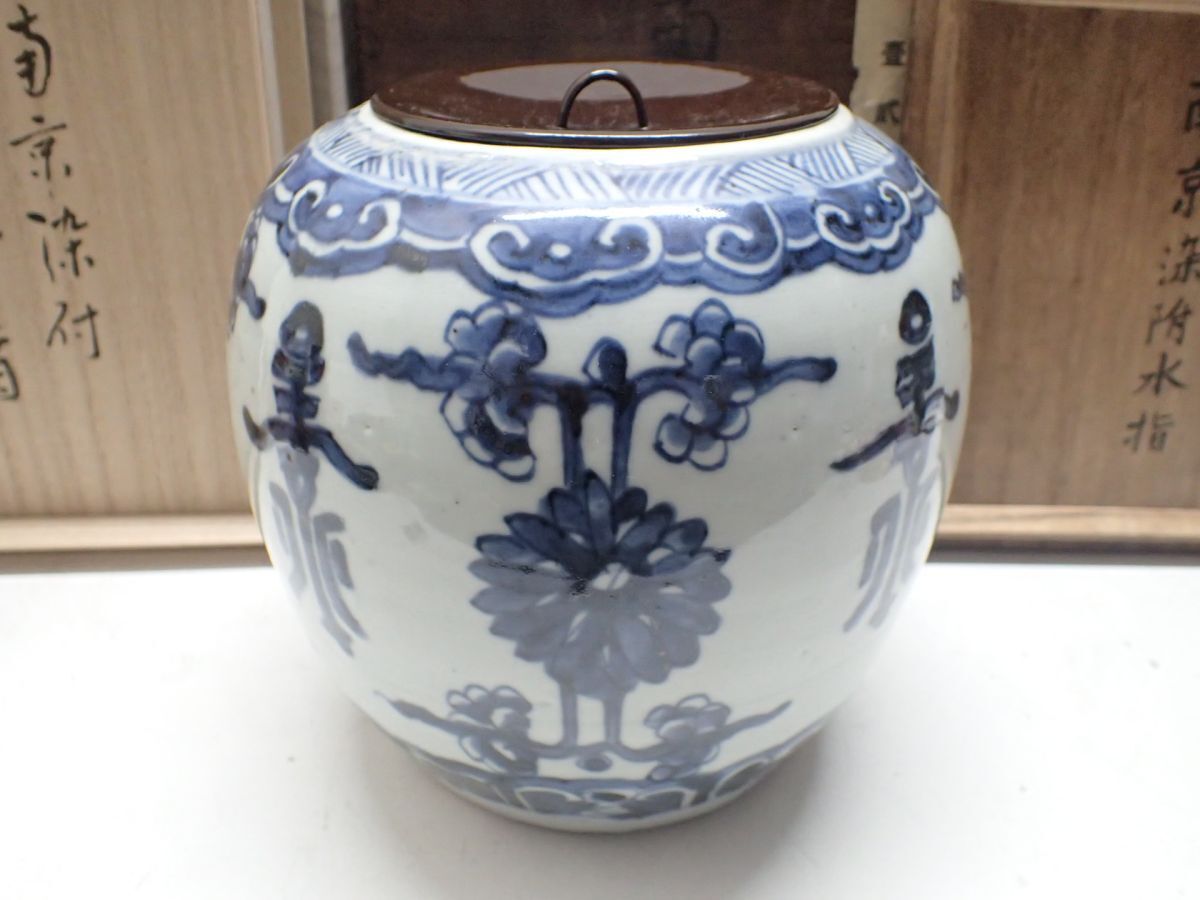 > 20P1V/1J〇中国古玩 彰祖菊寿 南京染付水指 中国骨董 南京 堀内宗心(兼中斎)書箱 二重箱〇