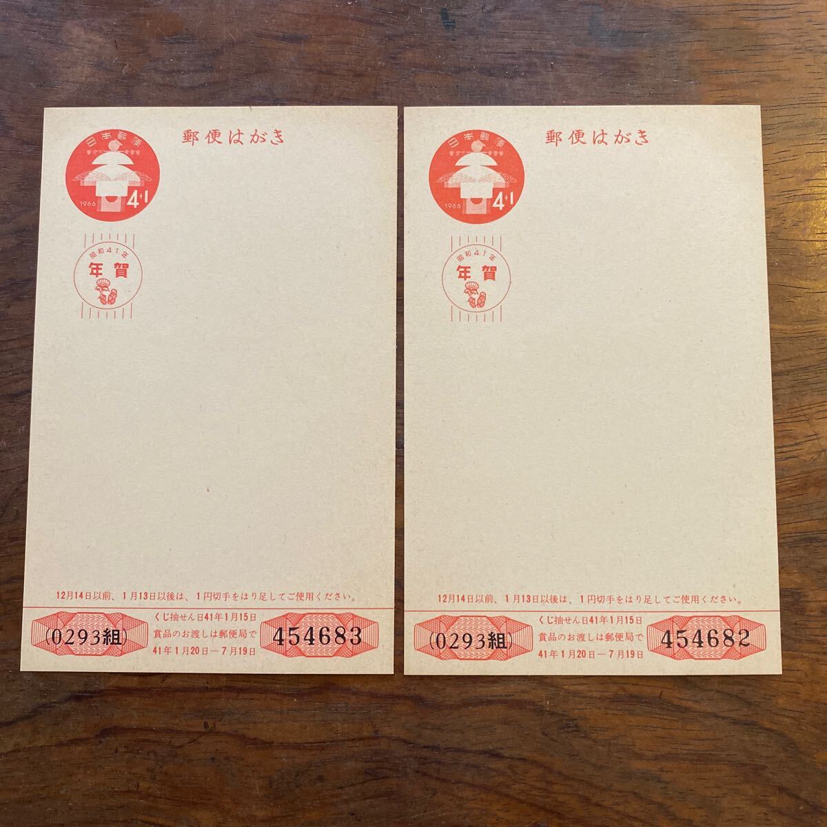 - [猫]昭和41年 古い 年賀はがき 二枚