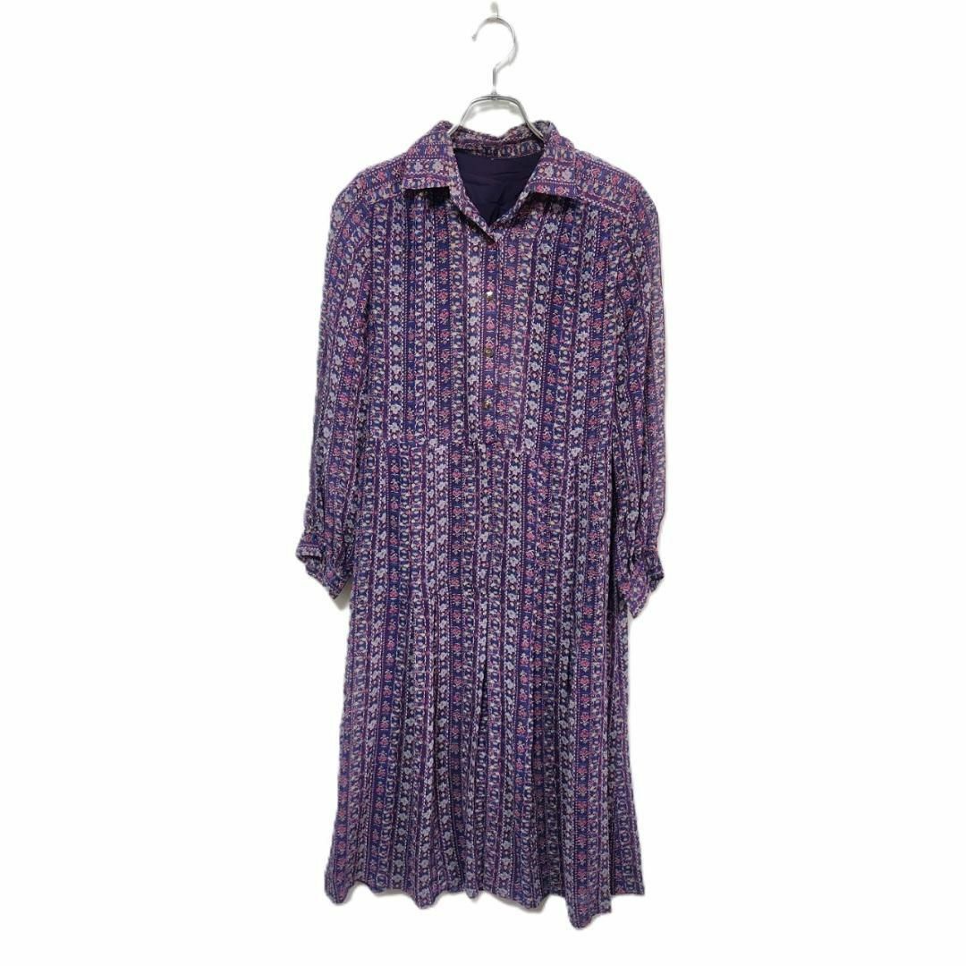 - シャツワンピース 13号 ロング丈 パープル 花柄 プリーツ きれいめ 上品