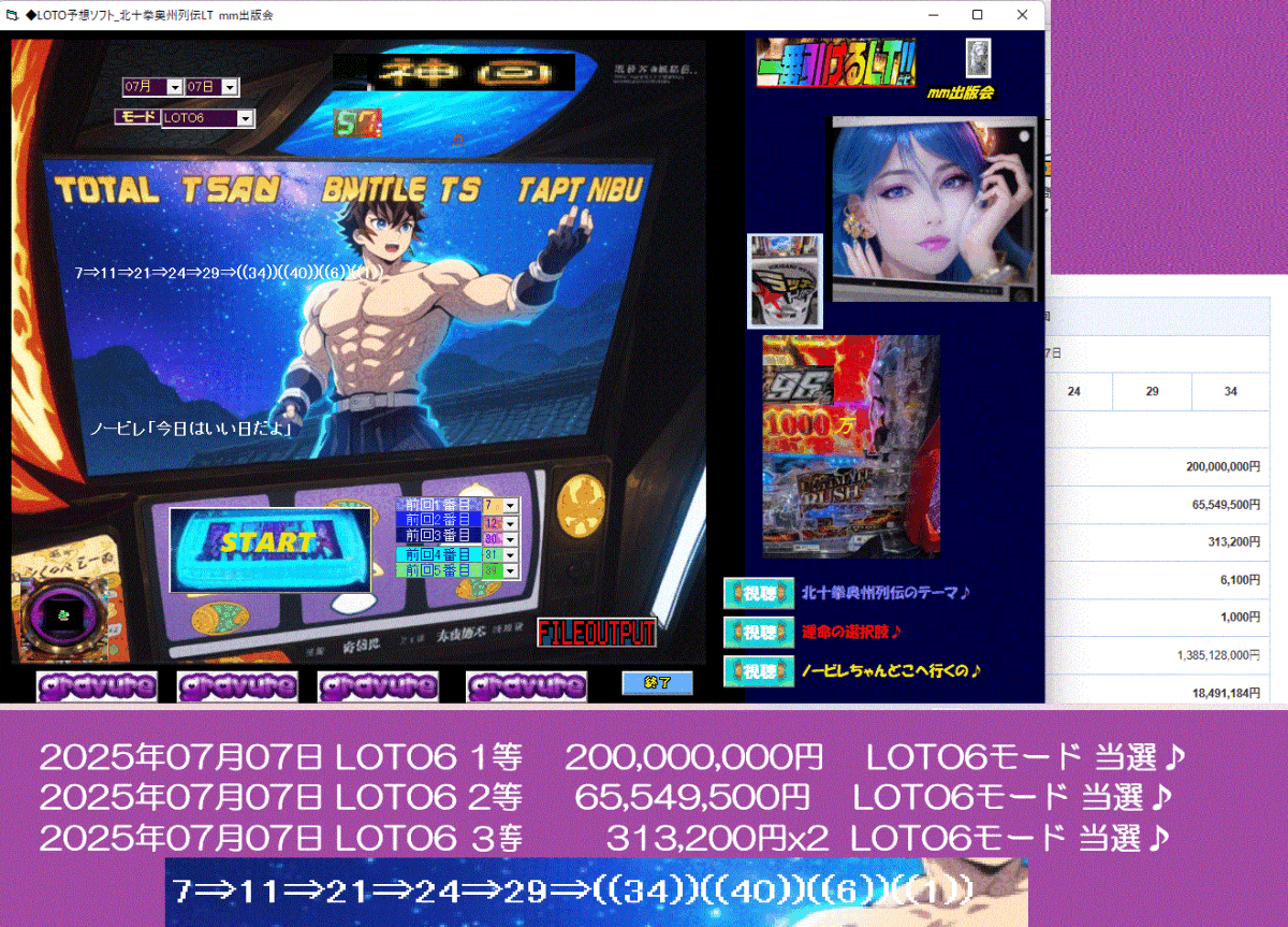新作 [◆LOTO予想ソフト_北十拳奥州列伝LT] をご案内申し上げます。 最強ソフトのロト6 ロト7 ミニロトフォーメーション予想版シリーズがまた登場!2025年07月08日 ミニLOTO 1等 11,182,500円 ミニLOTOモード 当選♪ 2025年07月08日 ミニLOTO 2等 165,400円 ミニLOTOモード 当選♪ 2025年07月08日 ミニLOTO 3等 10,900円x2 ミニLOTOモード 当選♪ 2025年07月07日 LOTO6 1等 200,000,000円 LOTO6モード 当選♪ 2025年07月07日 LOTO6 2等 65,549,500円 LOTO6モード 当選♪ 2025年07月07日 LOTO6 3等 313,200円x2 LOTO6モード 当選♪ 2025年07月04日 LOTO7 2等 14,565,500円 LOTO7モード 当選♪ 2025年07月04日 LOTO7 4等 6,900円 LOTO7モード 当選♪ 2025年07月04日 LOTO7 6等 1,200円 LOTO7モード 当選♪高額当選仕様で設計されている予想ソフトですので、3連続で高額当選中ですから是非試してみてください。このソフトは、各ロトとも予想点数が、本線2点~6点、条件によりボーナス予想でさらに2点~6点の予想です。「ラッキートリガー」発動で、1000万円以上当選の96%期待度になります。 このスペックは、ロト予想界史上で歴史的にも最強仕様の名機となります。今主流の「先ばれ告知音」が鳴れば、更に高額当選濃厚! 2025年07月08日 ミニLOTO 1等 11,182,500円 ミニLOTOモード 当選♪ 2025年07月08日 ミニLOTO 2等 165,400円 ミニLOTOモード 当選♪ 2025年07月08日 ミニLOTO 3等 10,900円x2 ミニLOTOモード 当選♪ [◆LOTO予想ソフト_北十拳奥州列伝LT]07月08日 ミニLOTO ☆GOGO☆金色になれミ 総合点87 そう、買わないと当たらないね[◆LOTO予想ソフト_北十拳奥州列伝LT][1⇒9⇒13⇒19⇒((23))((31) ))((11) ))((22)) ][◆LOTO予想ソフト_北十拳奥州列伝LT][ノービレ「貴方に奇跡が起きるかもね!」][◆LOTO予想ソフト_北十拳奥州列伝LT]ノービレ「今日も期待しちゃうよ♪」2025年07月07日 LOTO6 1等 200,000,000円 LOTO6モード 当選♪ 2025年07月07日 LOTO6 2等 65,549,500円 LOTO6モード 当選♪ 2025年07月07日 LOTO6 3等 313,200円x2 LOTO6モード 当選♪ [◆LOTO予想ソフト_北十拳奥州列伝LT]07月07日 LOTO6 総合点57 [◆LOTO予想ソフト_北十拳奥州列伝LT][7⇒11⇒21⇒24⇒29⇒((34))((40))((6))((1))][◆LOTO予想ソフト_北十拳奥州列伝LT][ノービレ「今日はいい日だよ」][◆LOTO予想ソフト_北十拳奥州列伝LT]ノービレ「今日も期待しちゃうよ♪」2025年07月04日 LOTO7 2等 14,565,500円 LOTO7モード 当選♪ 2025年07月04日 LOTO7 4等 6,900円 LOTO7モード 当選♪ 2025年07月04日 LOTO7 6等 1,200円 LOTO7モード 当選♪ [◆LOTO予想ソフト_北十拳奥州列伝LT]07月04日 LOTO7 ☆GOGO★神回 総合点66 そう、買わないと当たらないね[◆LOTO予想ソフト_北十拳奥州列伝LT][17⇒5⇒10⇒8⇒11⇒27⇒((20))((9))((23))((19))((16))((33))][◆LOTO予想ソフト_北十拳奥州列伝LT][5⇒10⇒17⇒2⇒21⇒20⇒((36))((19))][◆LOTO予想ソフト_北十拳奥州列伝LT]ノービレ「今日も期待しちゃうよ♪」今回は、新機能、業界開発の機能を2つ搭載しています!二つ目が、「ラッキートリガー」のULTIMATE RUSHです。1000万円以上当選の96%期待度になります。アイドル?!ノービレちゃんが「神回」を予告・・・この日は異変!!・買い目は、全てのロト基本 1点(予想にもボーナス数字を含むため)、実質 LOTO6 3点、LOTO7 3点、ミニLOTO 4点 です。 条件により、倍の数の買い目が出ることが御座います。(新機能が目白押し)あなた様も、今日からでも、一つロトで楽しみを持つのも、どうですか。もうすでに人生が楽しく変わっています。LOTO6 LOTO7 ミニロト 予想ができます。ロト6 ミニロト 高額当選でした♪今回は、特典グラビア ノービレちゃんの画像が観れる機能が付いています※(金の延べ棒が光りました)と出でていますが、もっとこれ以上の熱い予告が沢山あります。このツールは、診断チェック機能を装備した、予想ソフトです。 1.買いたいロト券が、本当に信頼できるのか、ガチで勝負しても、大丈夫なのか? 2.買い目を数点に絞りたいが、有望な勝負できる数字を、知っておきたい。 3.ロト67、ミニで買いたいが、1、2点で勝負に適した買い目を知りたい。 要は、このソフト 一点一点の買い目の診断と、勝負になる絞った予想の買い目も出してくれます。 診断した買い目の総合の評価点数や、どんな勝負度合いが良いかの指示も出ます。実際に、どんな当て方を過去にこの予想ツールがしてきたのかを、ご説明いたします。こんなシンプルなツールで、こんなに高配当などが立て続けに当たるのですから、楽です。[[◆LOTO予想ソフト_北十拳奥州列伝LTの具体的仕様な説明]]・このソフトは、パソコンWindows版の全てに対応しています。Xp Vista 7 8 8.1 10 11動作確認済み ・買い目は、全てのロト基本 1点(予想にもボーナス数字を含むため)、実質 LOTO6 3点、LOTO7 3点、ミニLOTO 4点 です。・条件により、倍の数の買い目が出ることが御座います。基本点数とは異なる数の予想数になることがあります。・熱い予告の時に、金の延べ棒、★赤★ランプも点灯します。・新機能、業界開発の「先ばれ告知音」機能を搭載しています!・新機能、業界開発の「ラッキートリガー」発動で1000万円以上当選の90%期待度になります。・ノービレちゃんが、本
