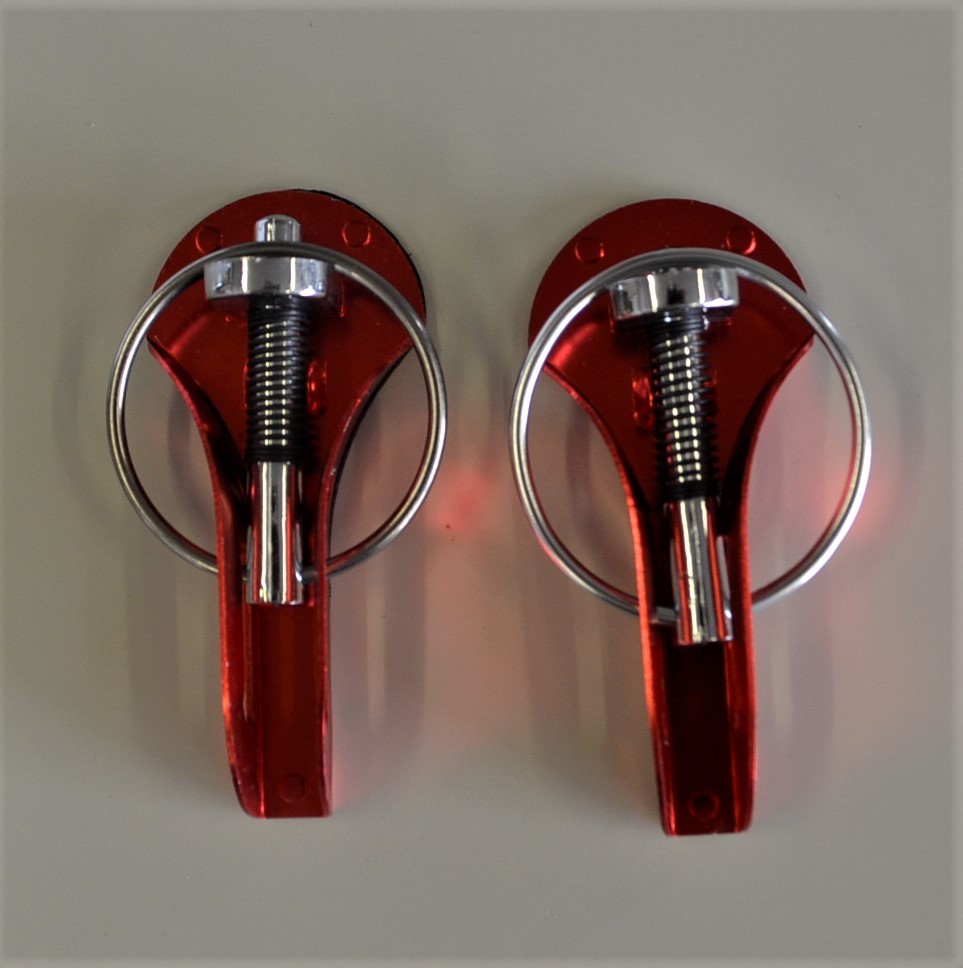 - 限定販売・ダミ-アルミ・ボンネットピン・両面テープ貼り付けるだけ・カラ-レッド送料無料・