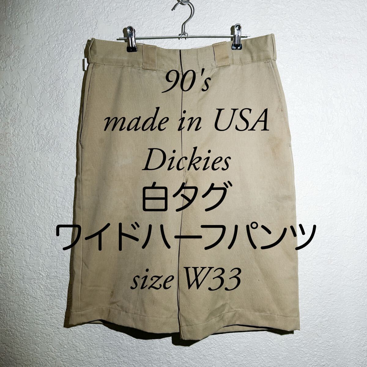 - USA製 90's Dickies ディッキーズ ヴィンテージ ワイド ハーフ ワーク パンツ ベージュ W33 白タグ アメリカ チノ チカーノ バギー 古着