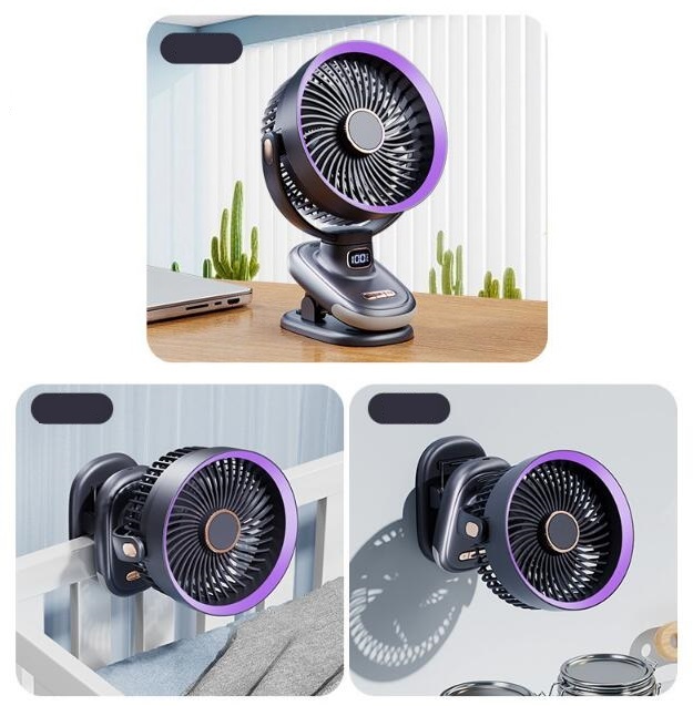 - 新入荷高品質自動首振り 扇風機 クリップ卓上/クリップ/壁掛け 小型 充電式 5段風量 残量目安表示 大容量 パワフル送風持ち運び便利 送風機
