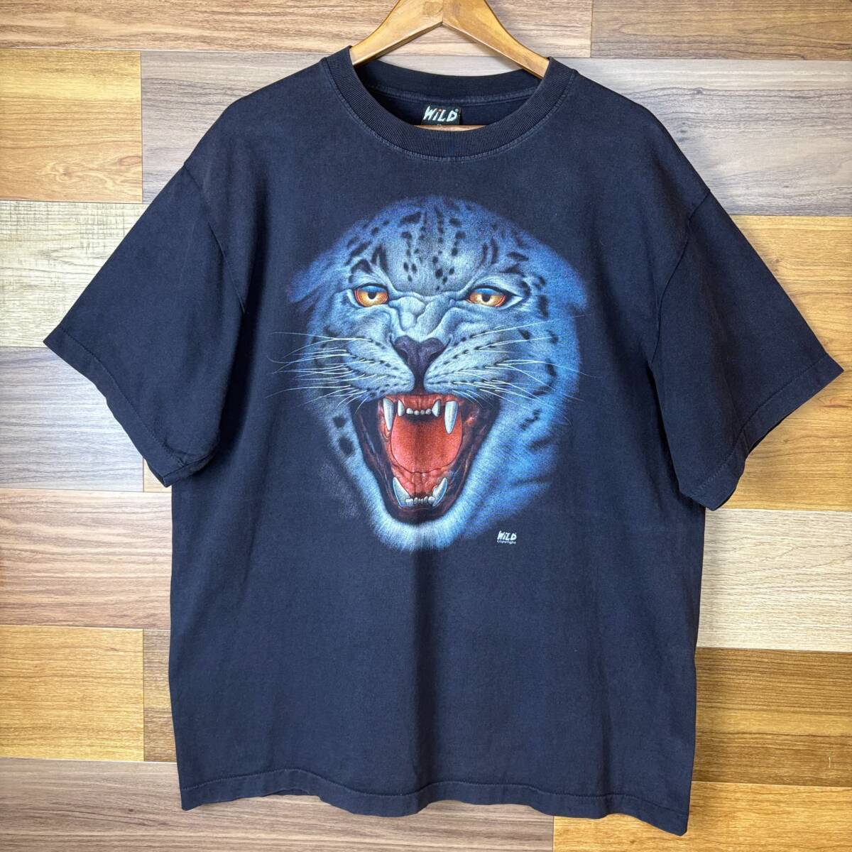 > 90s WILD TIGER タイガー 顔虎 両面プリント T-sh Tシャツ サイズ メンズ XL シングルステッチ 90年代 VINTAGE ビンテージ 古着 r25070815