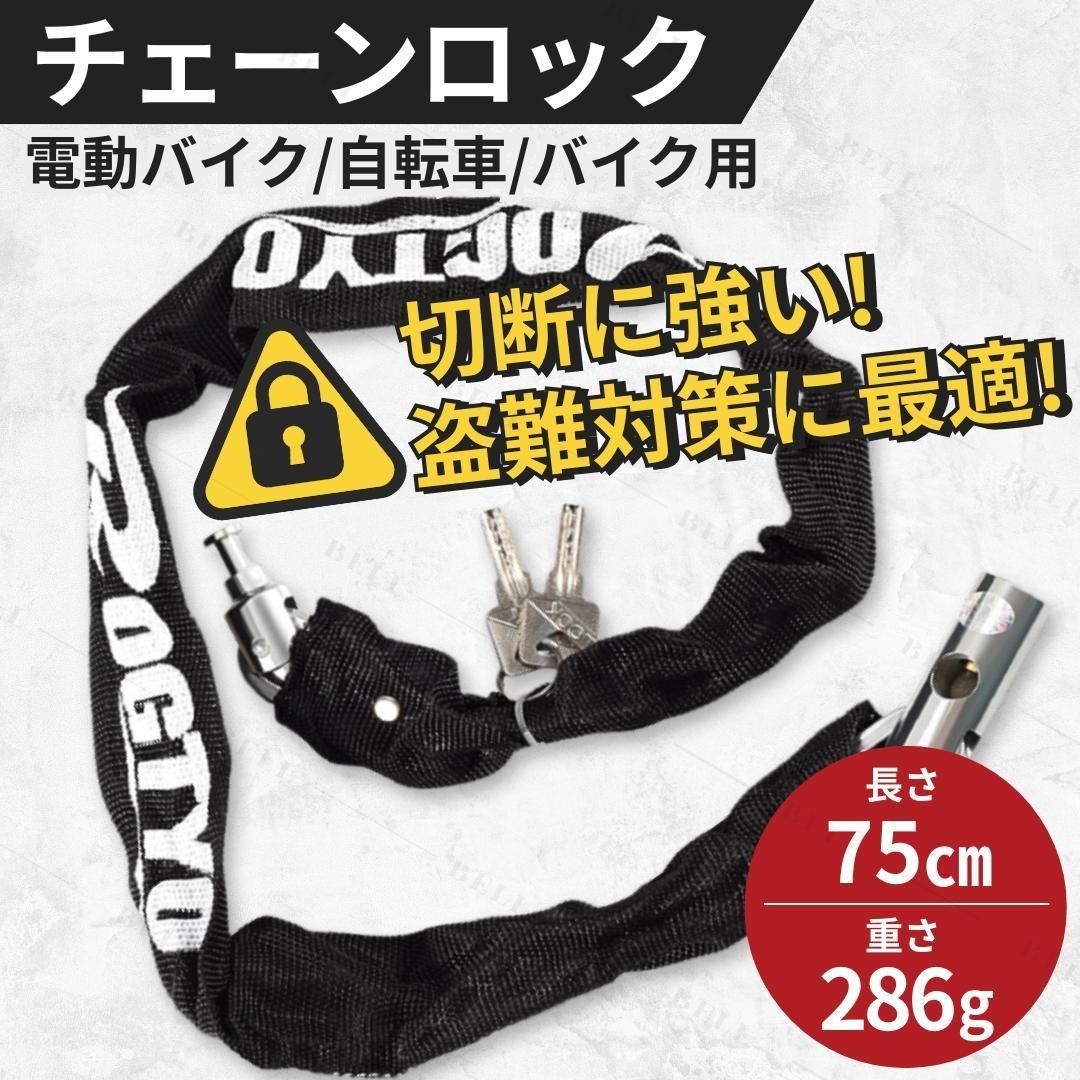 - チェーンロック 自転車 バイク 鍵付き 防犯 軽量 頑丈 防水 スペアキー付 黒 コーティング ロックシリンダー