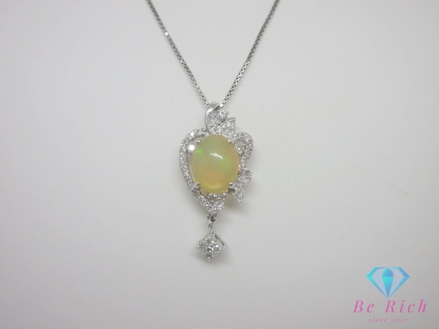 - Pt900 Pt850 K18 WG オパール 2.27ct ダイヤモンド 0.41ct 0.09ct 付 デザイン ネックレス ペンダント 750【中古】【送料無料】 th13078