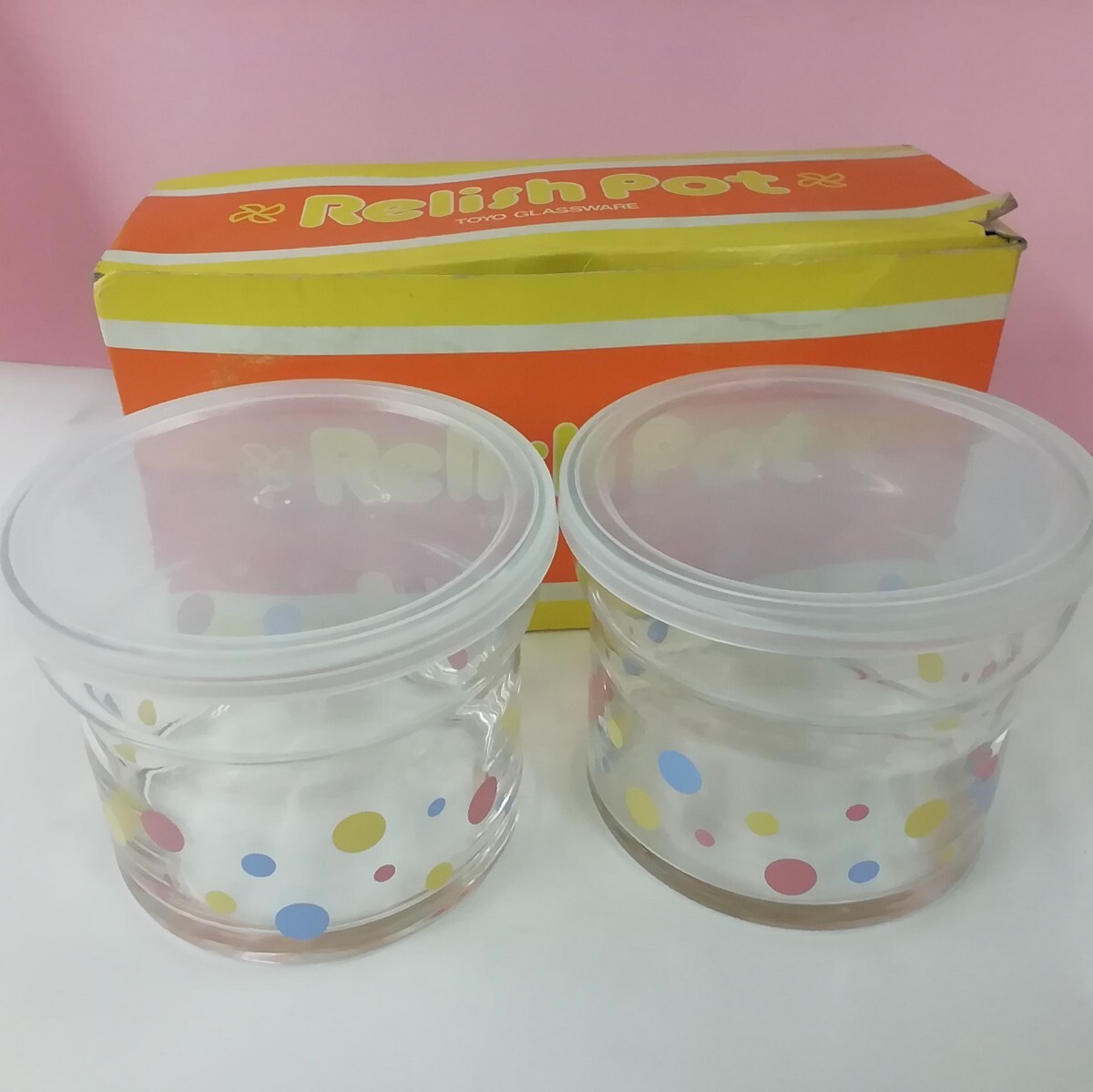 - 【中古】東洋ガラス 蓋つき レリッシュポット 2個セット
