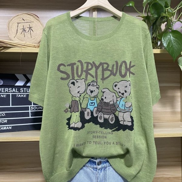 > 25zy サマーニット レディース トップス 高質 ラフ 麻タッチニット チュニック ナチュラル 麻混 サラサラ 涼感 クールネック グリーン