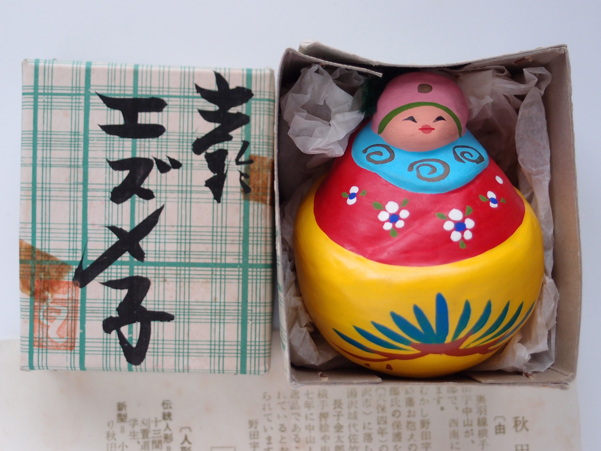 - ●秋田県 中山人形 いづめこ土鈴●中山土人形 3代目 樋渡義一 未使用保管品 縁起物 郷土玩具 郷土人形 民芸 しおり・箱付
