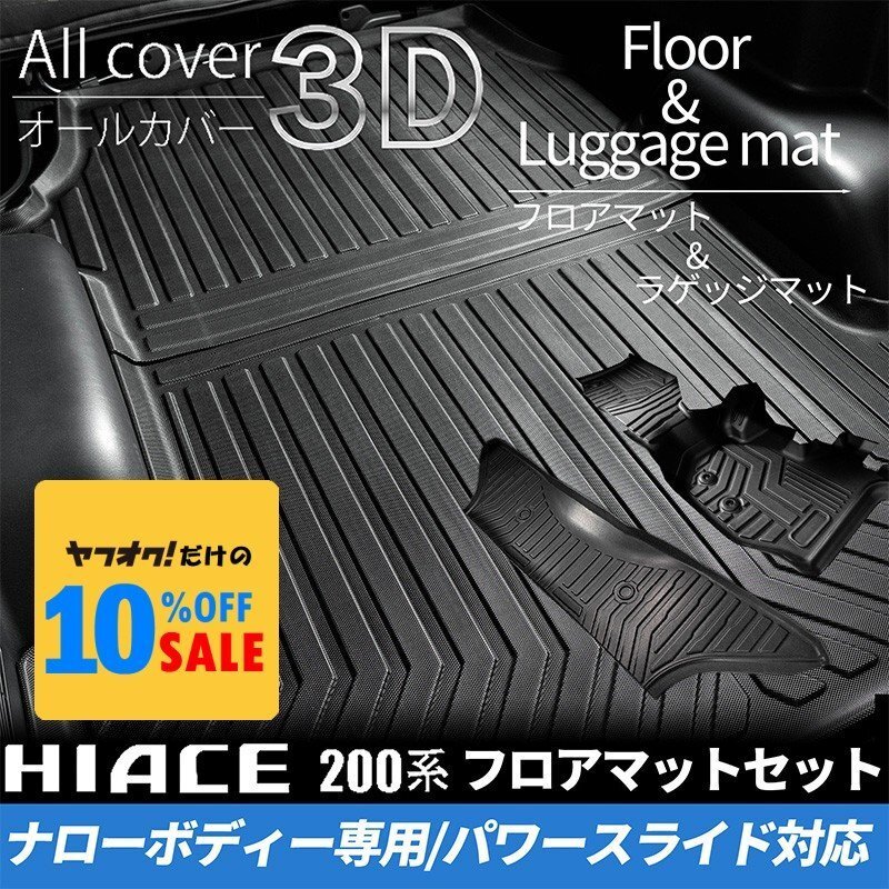 > ● ハイエース 200系 1型-7型 [S-GL 標準ボディ用] 3D フロアマット [フロント/セカンド] & パワースライドドア対応 ラゲッジマット セット