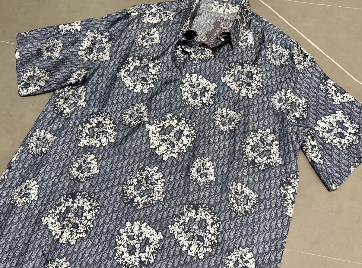 - 新品 Dior×Denim Tears シルクツイル オブリークグラフィックショートスリーブシャツ ネイビー サイズ40 ディオール L