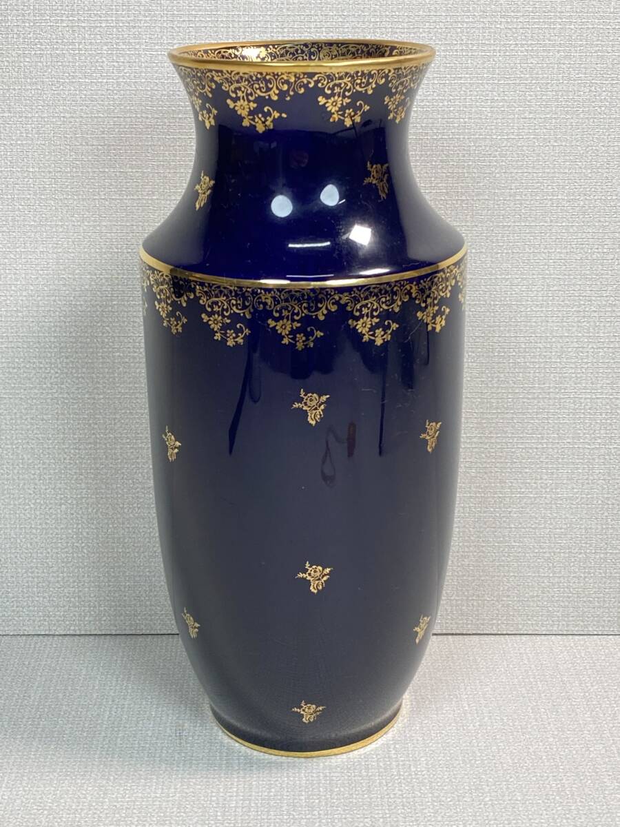 - フランス製 リモージュキャッスル LIMOGES CASTEL 花瓶 コバルト ネイビー 22k 金色装飾 金張り JY012
