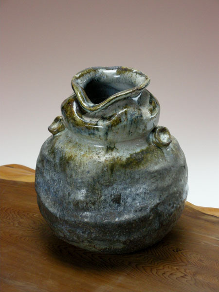 - 萩焼 永久勝斎 作 萩灰被ひさご形耳付花瓶