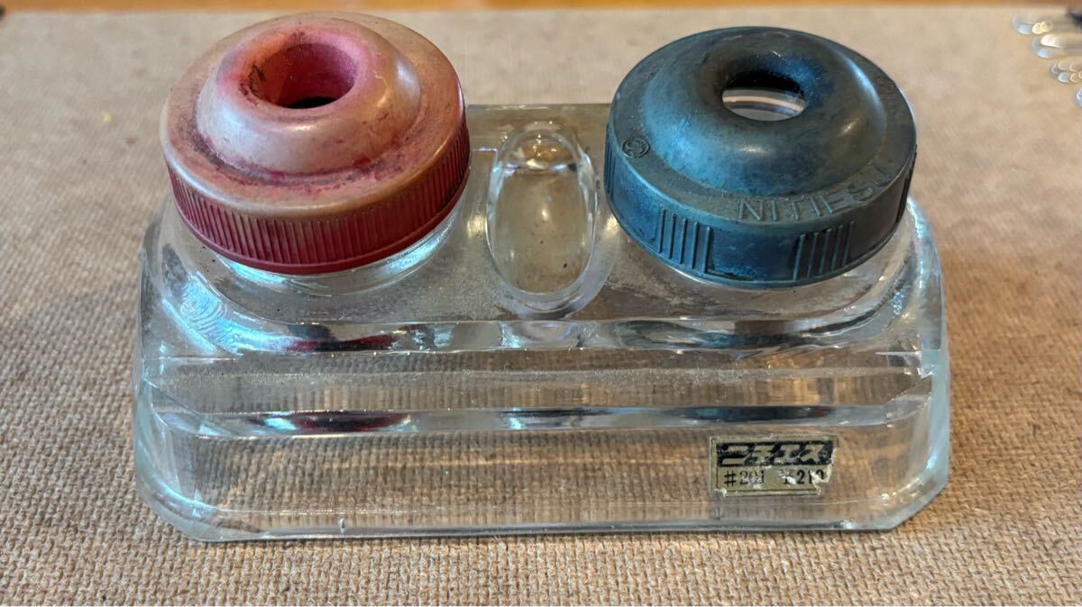 - インク壺ペン立て昭和レトロ デスク卓上アンティーク万年筆 筆記具 インク瓶 0267