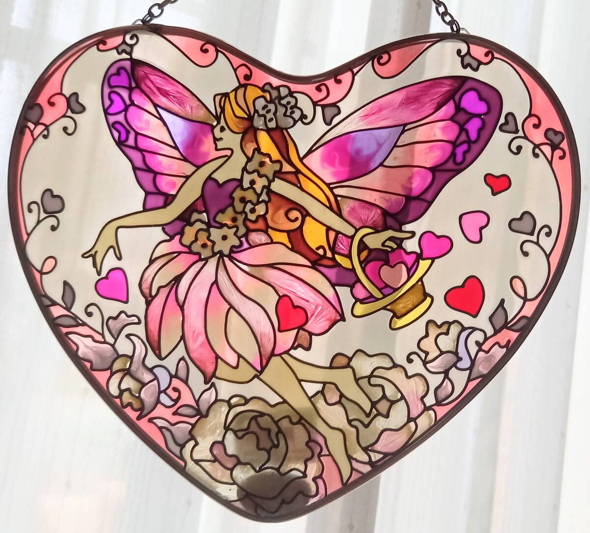 - 新品☆ジョンベーカー☆ハート型フェアリーステンドグラス壁掛け☆(JOAN BAKER DESIGNS)