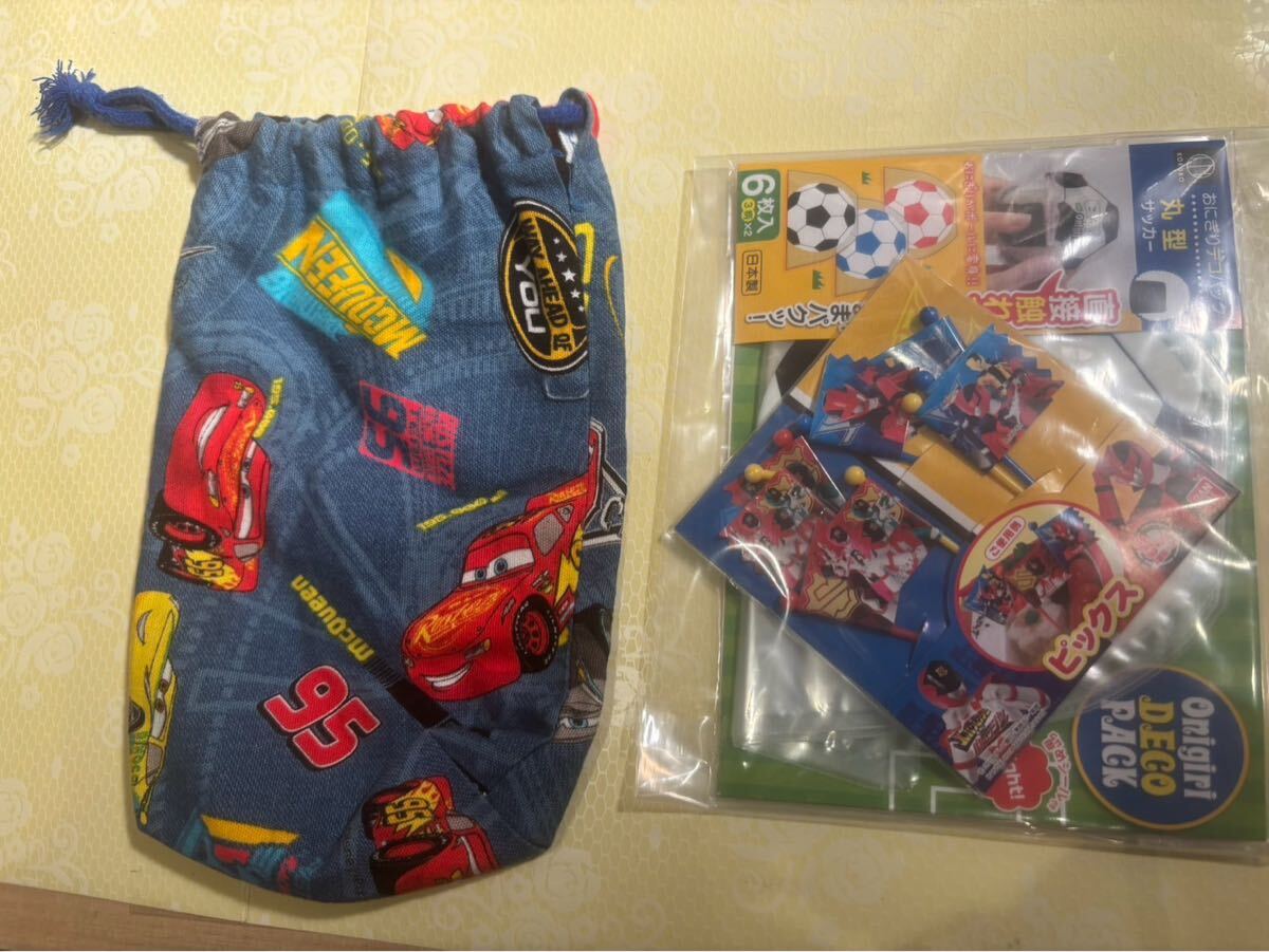 - 新品 ピック おにぎりデコパック 丸型サッカー カーズ巾着