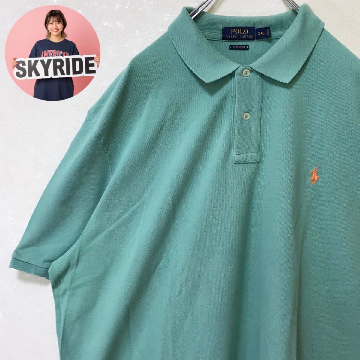 > 【美品】POLO RALPH LAUREN ポロラルフローレン ポロシャツ XXL 緑 ポニー刺繍 ワンポイントロゴ ゆるだぼ 人気 春夏コーデ 古着 #TT0249