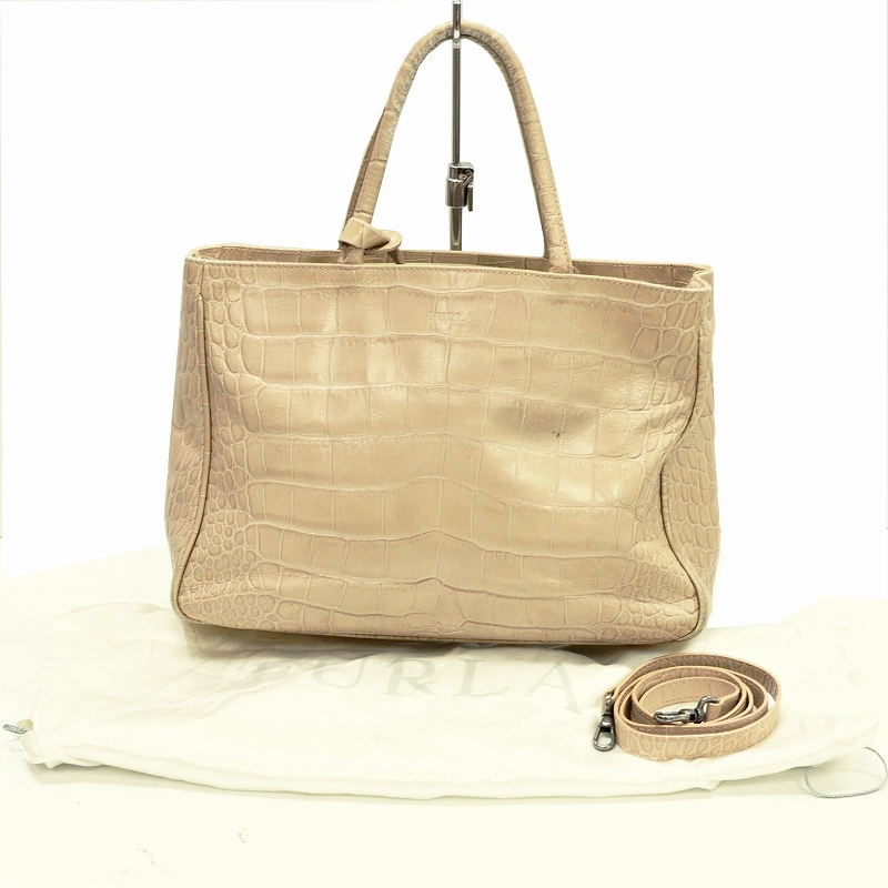 - FURLA フルラ 型押し レザー 2WAYバッグ ハンド ショルダー ピンク系 レディース 手提げカバン 【中古】 JA-18317