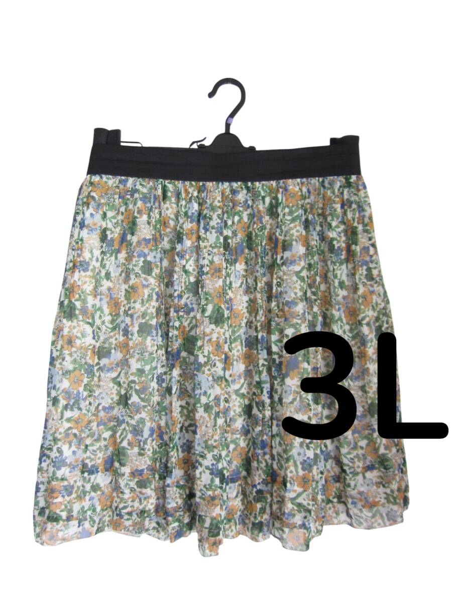 > ★送料無料 621 新品 【3L】 ブラック 花柄 フレア スカート 大きいサイズ ゆうパケットポスト