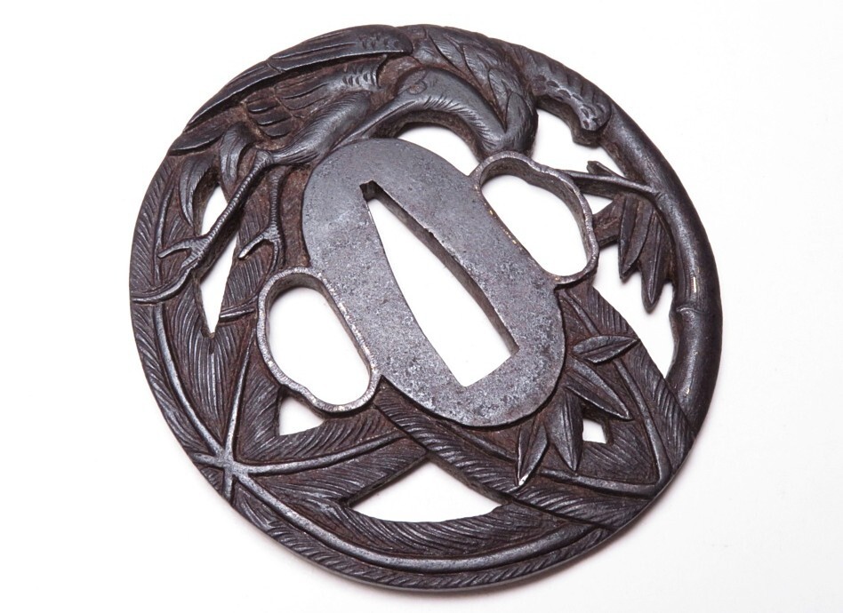 - 【10769】刀装具 (検/甲冑/刀/縁頭) 江戸~明治 鉄地 松 透かし 鍔(初品・買取品)