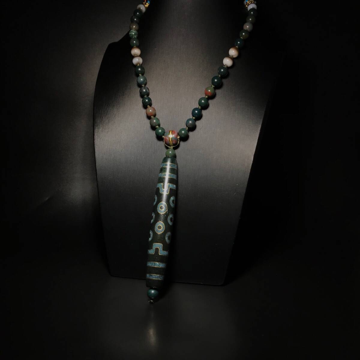 > 蔵友旧蔵出 瑪瑙製 細密彫 錯金絲 象雄天珠配十六眼象雄天珠ネックレス本 根付裝身具 希少珍品 貴重品 置物 古賞物 中国古玩 中国古美術品