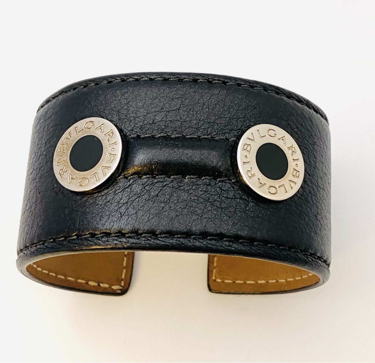 - 美品 BVLGARI ブルガリ バングル レザー ブレスレット ブラック×シルバー