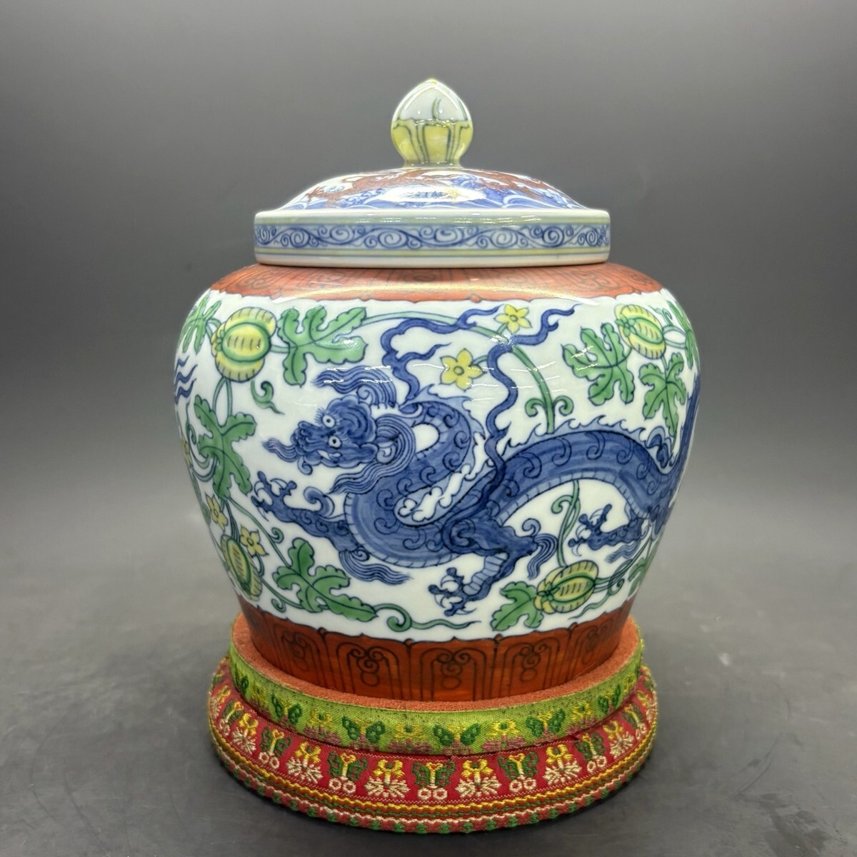 - 「明 成化年製 陶磁器 鬥彩西瓜龍紋 天字罐」染付 置物 擺件 古賞物 中国古美術 旧蔵出