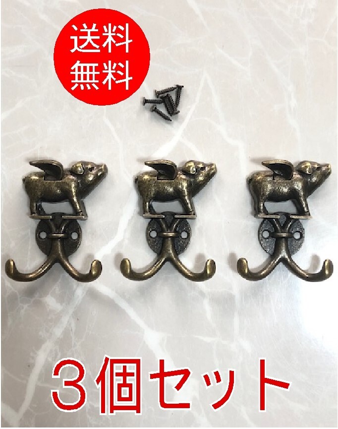 - 【3個セット】■壁掛けフック 金具 FU-11■アンティーク ブロンズ 帽子 おしゃれ 洋服 ヨーロッパ 古民家 ヨーロピアン レトロ