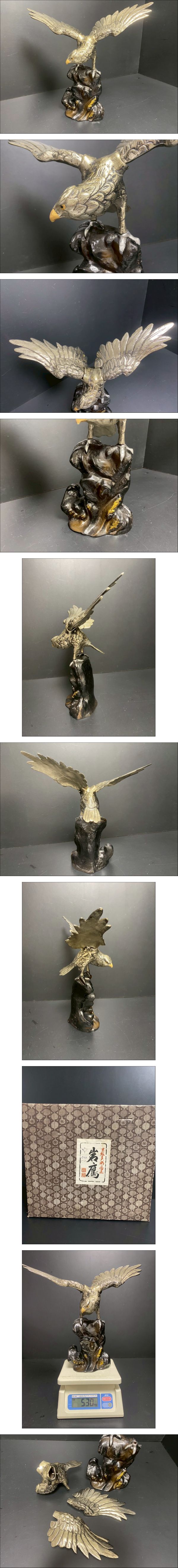 - ★a-254 岩鷹 鉄製 置物 中銀 タカ オブジェ インテリア 5.30kg 箱入り 金属製 H:43.5㎝