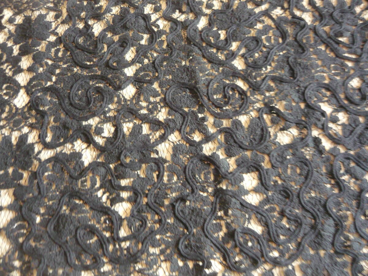 - ハギレ*レース*花柄麻混:黒*1枚④新
