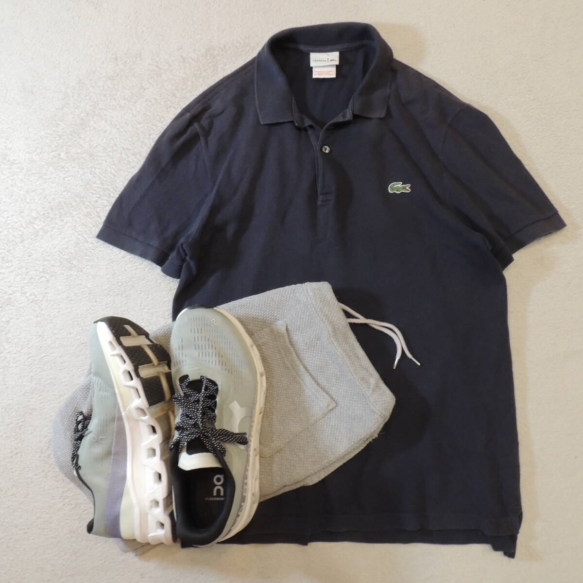 - LACOSTE ラコステ 胸刺繍ロゴ 鹿の子ポロシャツ カノコ 紺 ネイビー メンズM 色落少