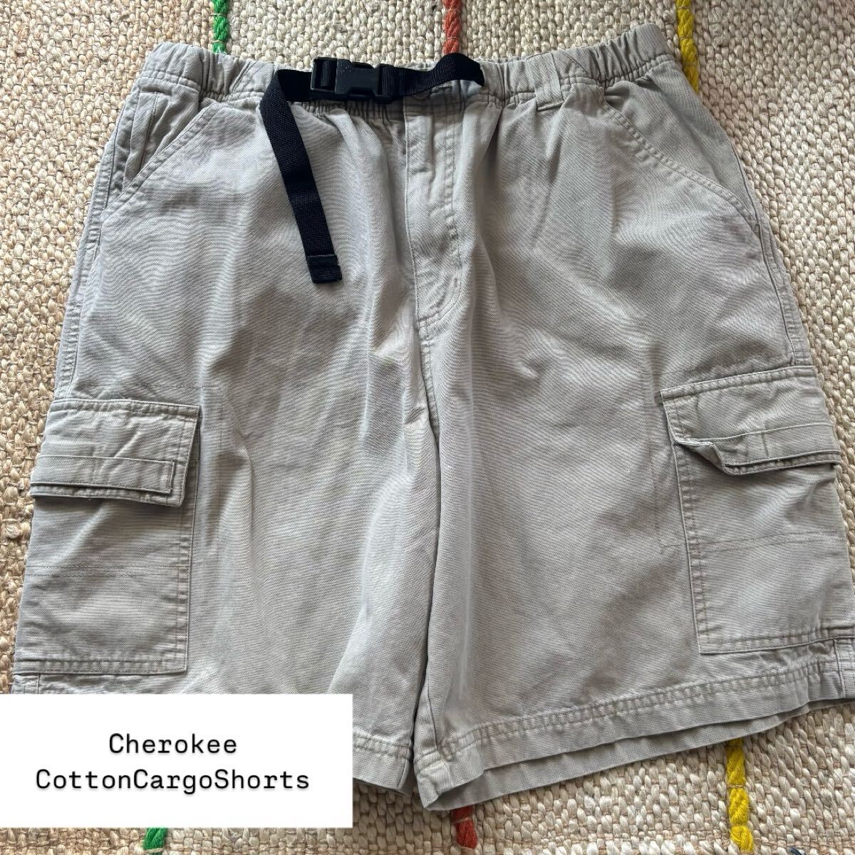 > 90s cherokee cotton cargo shorts L チェロキー コットン ダック地 カーゴ ショーツ ハーフパンツ ショートパンツ ドローコード