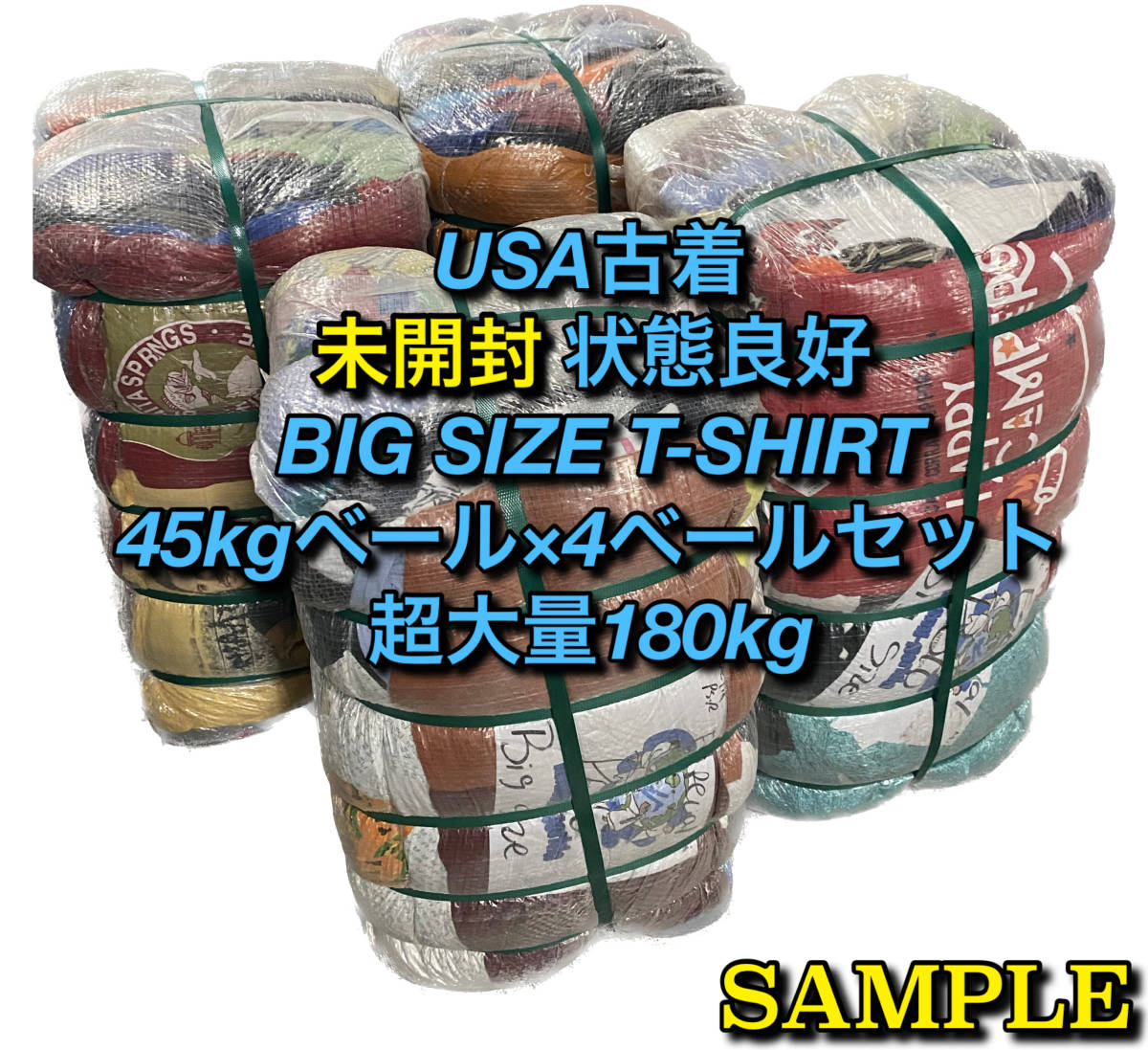 - 【TMT4】★未開封★ アメリカ古着卸 状態良好BIGサイズTシャツ180kg4ベールセット 超目玉商品 XL以上 680枚程度 カラバリ デザイン豊富