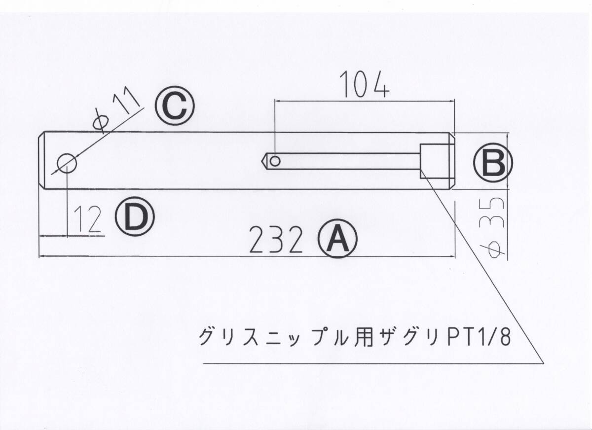 - NO 1989 Φ35用 長さ232mm グリス穴付きバケットピン 1本
