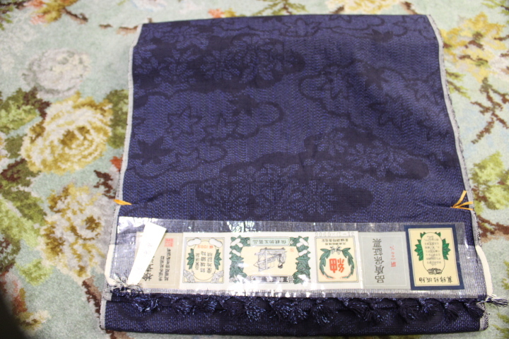 > きもの今昔8753 本場真綿結城紬 反物 茨城郡結城郡織物産地証明等 産地証明書付き 濃紺色ブルー絣 12m相当