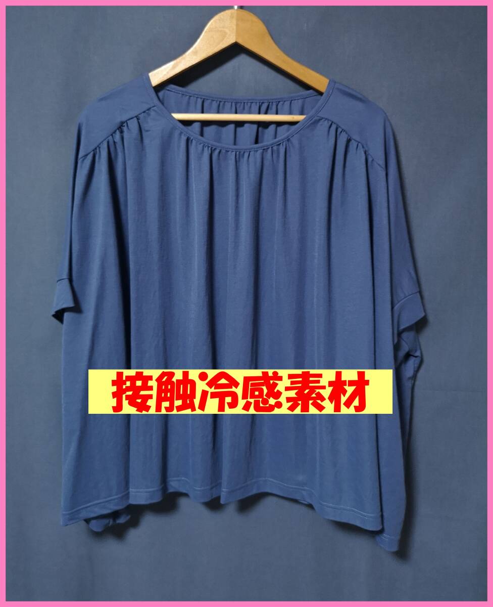 > BLS‐439‐3夏☆サンプル品☆送料込み☆即決☆ナチュラル系☆サラサラTシャツ素材☆M~Lサイズ☆ブラウス☆濃いブルー系☆接触冷感