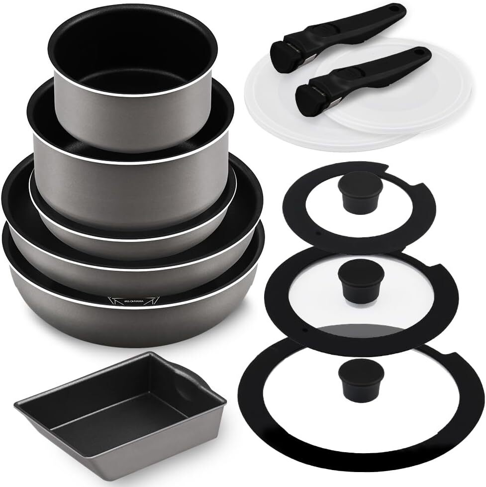 > グレイッシュシルバー色 IH対応&ガス火専用 対応 アイリスオーヤマ フライパン 鍋 セット IH&ガス火対応 13点セット