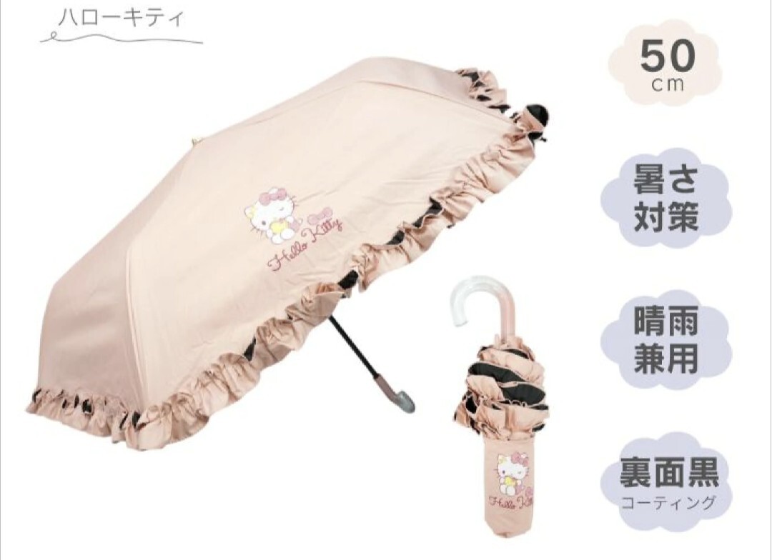 - サンリオ 折りたたみ傘 日傘 晴雨兼用 雨傘 ハローキティ フリル 子供傘 UVカット 紫外線対策 熱中症対策 耐風 コンパクト