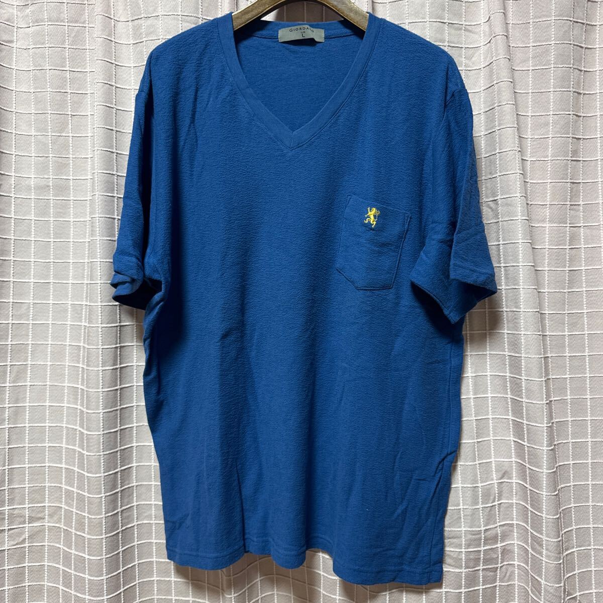 - 美品 タオル素材Vネック 半袖 Tシャツコバルトブルー L ね