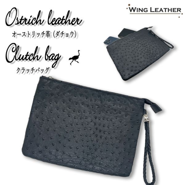 - 新品 クラッチバッグ 本革 メンズ オーストリッチ フルポイント クイルマーク ダチョウ革 駝鳥 レディース セカンドバッグ ブラック cnk037