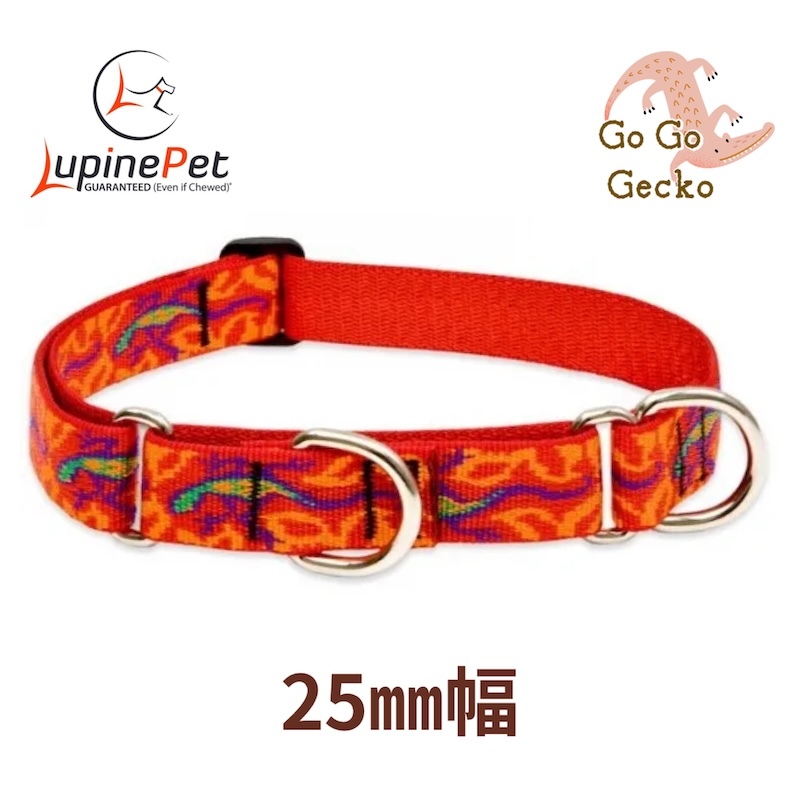 > ハーフチョークカラー・Lサイズ・25mm幅 ゴーゴーゲッコー柄Go Go Gecko 48-68cm LUPINEルパイン アメリカ製 軽量 丈夫