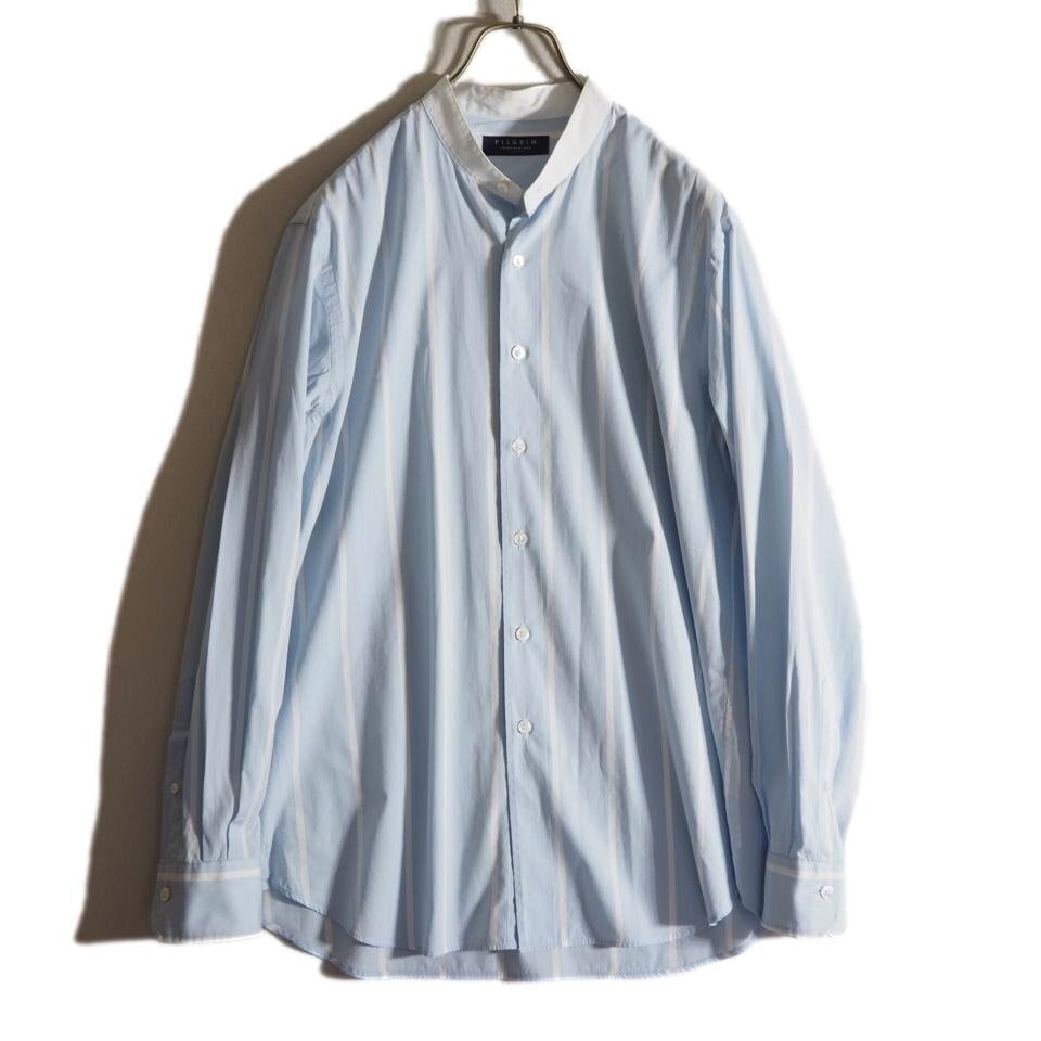 > P8307f59 ■TOMORROWLAND Pilgrim ピルグリム■ ブリティッシュポプリン コットン ストライプ バンドカラーシャツ ブルー M 春~秋