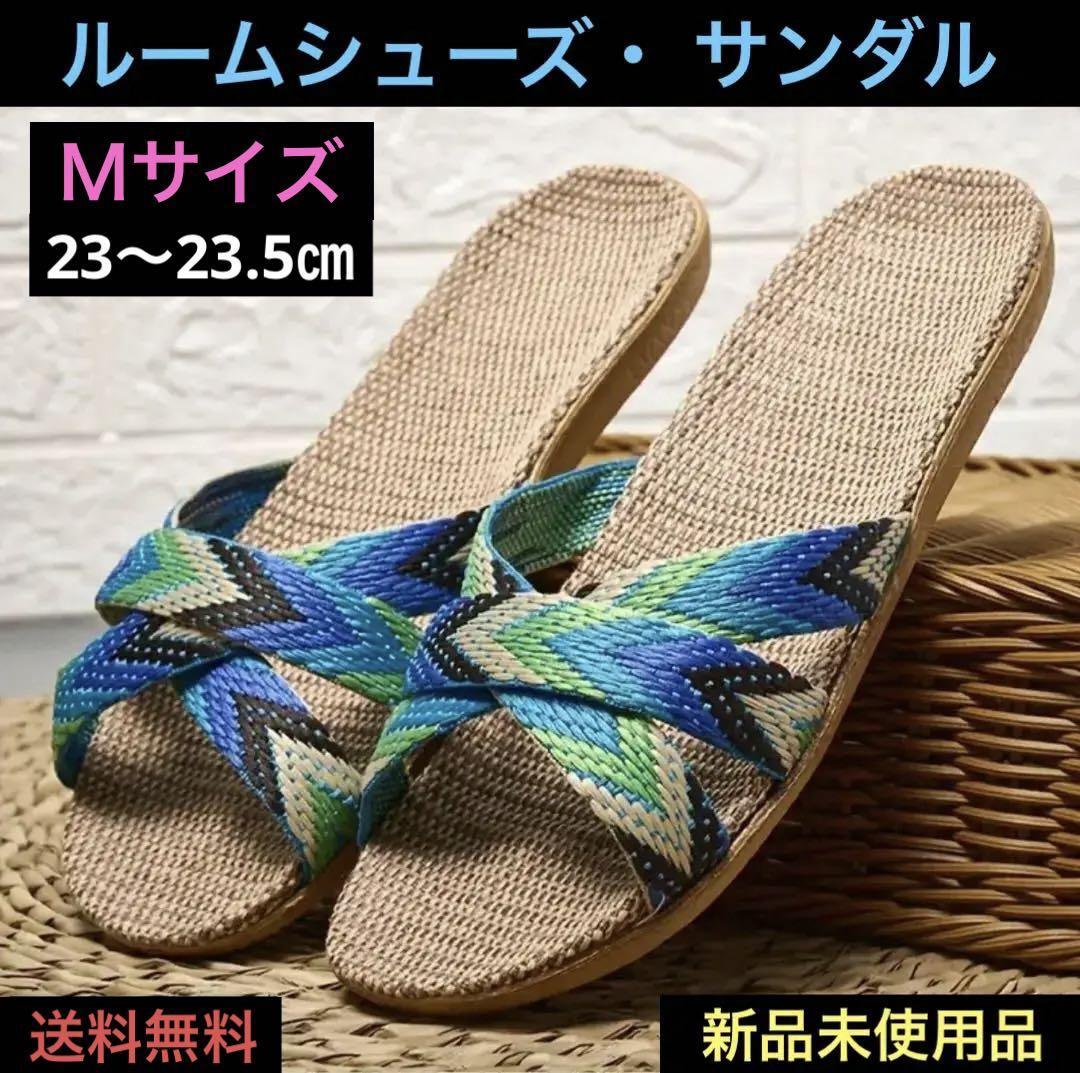 - ルームシューズ スリッパ カジュアル サンダル Mサイズ ミュール 室内履き リネン EVAソール 女性 サマーファッション おしゃれ フラット