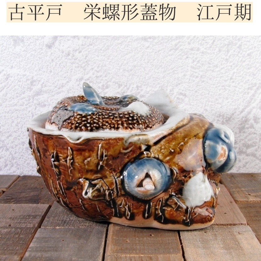 - 古平戸 栄螺(さざえ)形蓋物 幅:13cm 幕末~明治/24L046