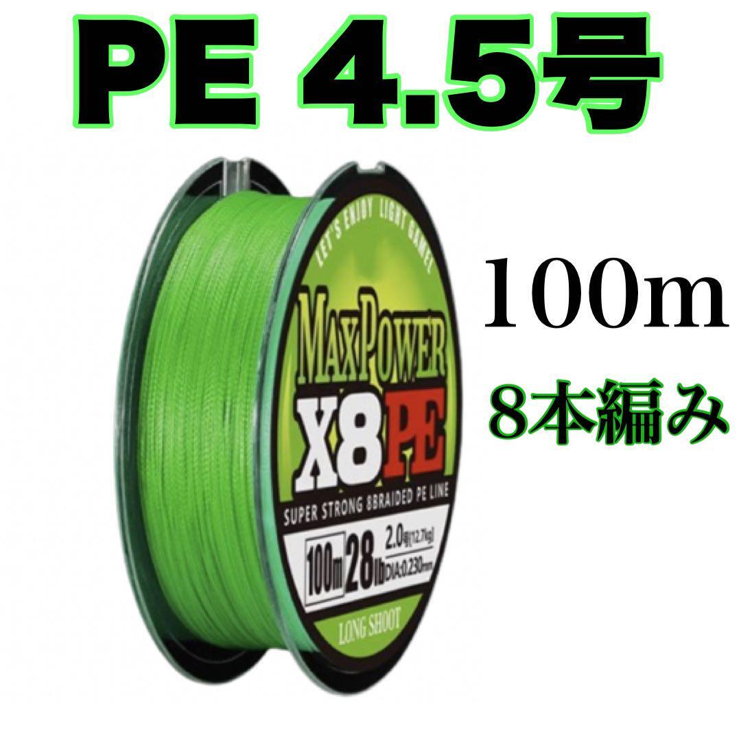 - PEライン 4.5号 100m 8本編 グリーン 緑 X8 8本撚り