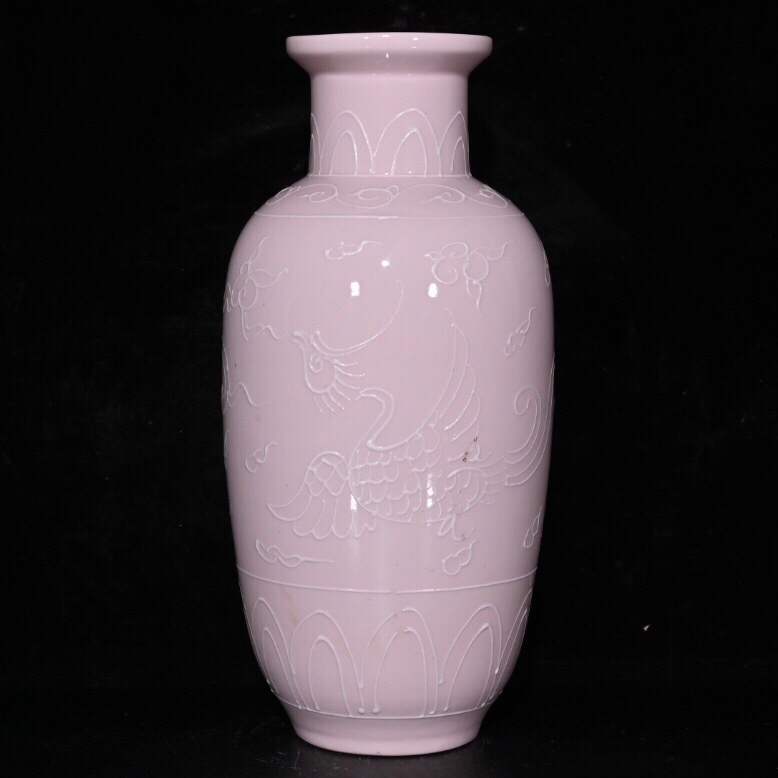 - ▽鴻▽ 明 永樂年製款 古陶瓷品 紅釉 雙鳳紋 夜光瓶 陶藝 古賞物 古董品 時代物 稀少珍品 中国古玩 中国古美術